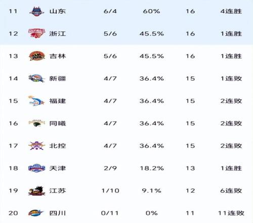 在广东队、广厦队、北京队组成争冠第一集团的时候,上海队突然爆发,凭借一波7连胜战绩,坐稳积分榜前四,并且9胜2负追平以上三支强队。