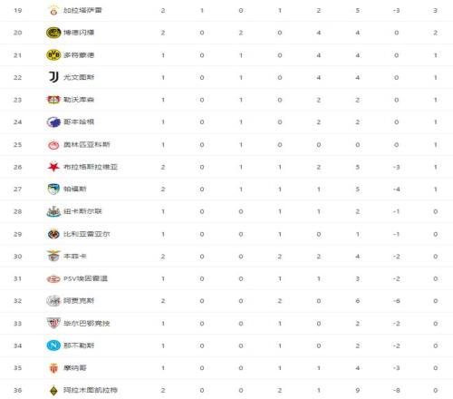随着皇马50,拜仁51,欧冠最新积分榜:利物浦01输球跌至第16