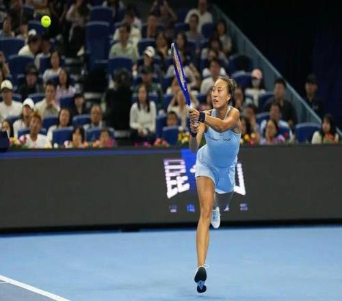 郑钦文在比赛中回球