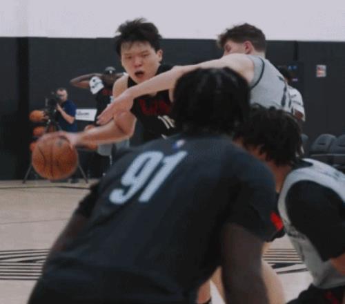 杨瀚森:我说我的(中文),他说他的(英语),哈哈开玩笑开玩笑。有时候我能白话两句英语,他们有的时候说的英语我大概能明白在说什么,能猜到一些词。猜错了也问题不大。