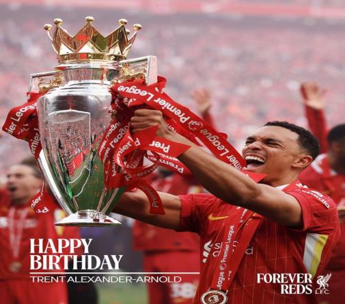 老东家利物浦在官方社媒中晒出了阿诺德上赛季英超夺冠捧杯的图片,并送上了生日祝福,“特伦特·亚历山大-阿诺德生日快乐!”