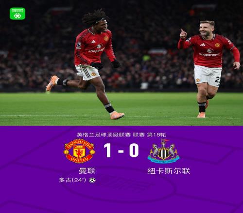 北京时间12月27日,英格兰足球超级联赛第18轮,曼联坐镇主场迎战纽卡斯尔联。比赛中,多古攻入全场唯一进球,帮助球...